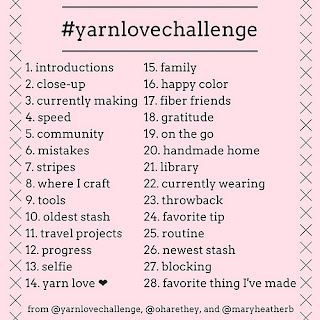 Check it out! Find me on Instagram here. And post your photos with #yarnlovechallenge. There is over half a month left! Want more yarn love? There is a Ravelry group for this, too!