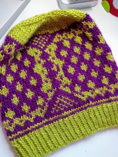 This slightly oversized stranded colorwork hat was born out of an inexplicable desire to knit something with a corona virus on it. Whether this drive came from a longing to control my surroundings (which we all know are not within our control), show solidarity with those who are afflicted most by Covid-19 or just to “call the virus out,” as if that could accomplish something. I cannot say.