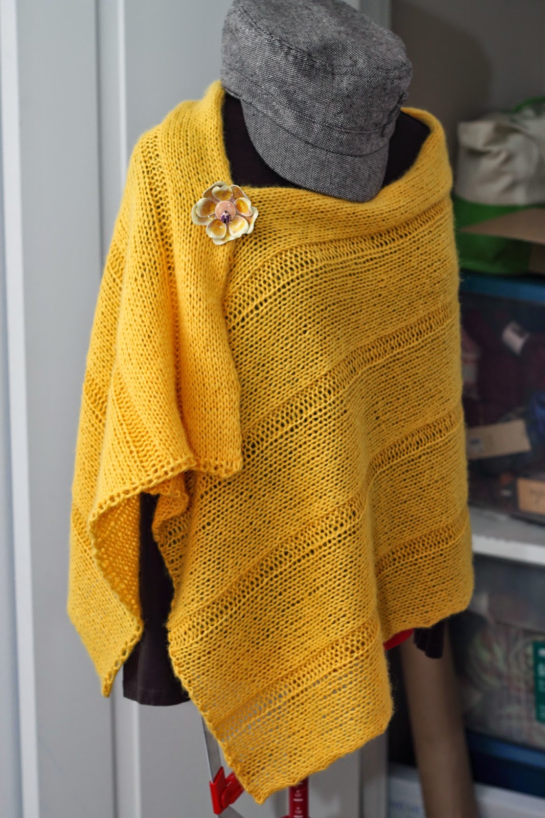 …goldenrod yellow yarn–TECHNO— and a Sasha wrap pattern from Blue Sky Alpaca. Lucky for my I love that color.