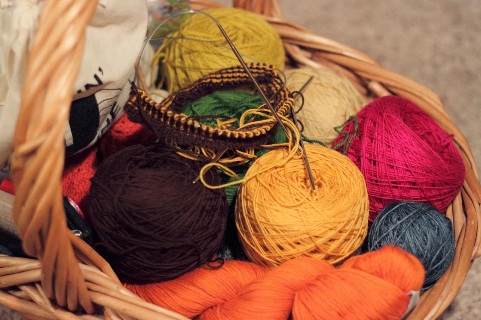 For that, I added Lamb\’s Pride Worsted Weight yarn in Oatmeal and Wild Oak and Lamb\’s Pride Bulky Weight in Onyx for the center piece.