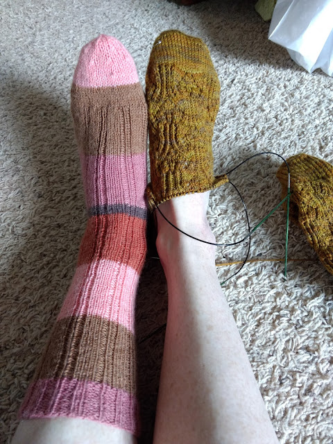 I think I’ll start with a couple of UFO’s. Years ago, I made a single sock: Chrissy Gardiner‘s “Spring in Oregon” socks from her very lovely, very educational, I highly recommend it: Toe-Up! Patterns and Worksheets to Whip Your Sock Knitting Into Shape.