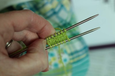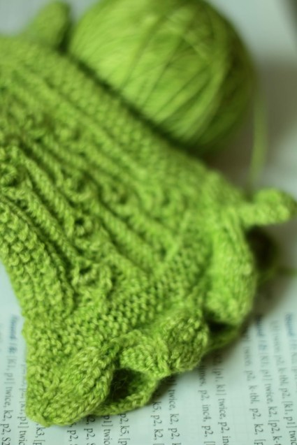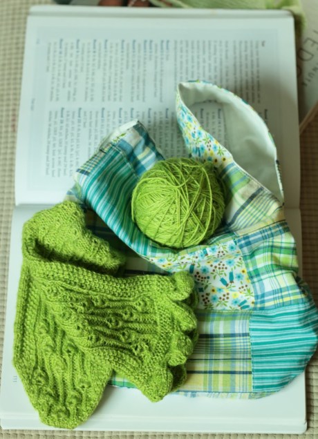 Back on Track: Anyway, I made one sock — many of us know the pain of the one sock syndrome — and the one sock was gorgeous. It is bright green merino and silk from Araucania Itata and oh how lovely is the sock pattern in that yarn! The textures just jump out!! And back when I made it, I was just learning toe-up! Chrissy\’s instructions were so good –and I such a blind follower — that it actually turned out! I admire the one sock from time to time, from where it sits in a basket atop my desk, enclosed for safety in a ziplock baggie, lest the bugs get it.